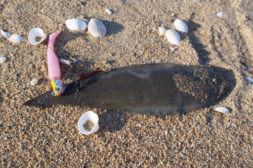 本日の釣果は、小さなマゴチ、小さなエイ、舌平目、バカ貝、ハウルの5種目?でした。