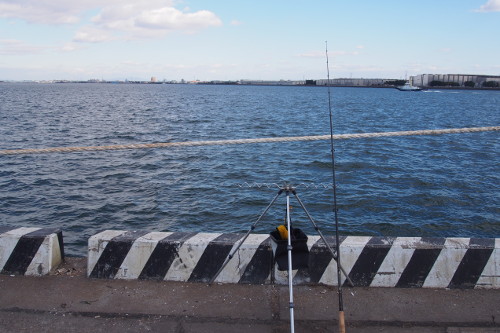本日の釣り場は半田緑地公園の北側の岸壁です。足場の良い岸壁に車を横付けして釣りができますが、釣り禁止にならないためにも、港湾関係者の迷惑とならないように気を付けましょう。