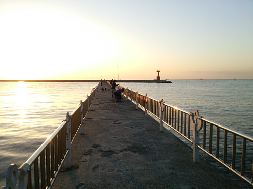 まず訪れたのは白子漁港の釣り桟橋。日の出が6時で6時半からのスタートです。