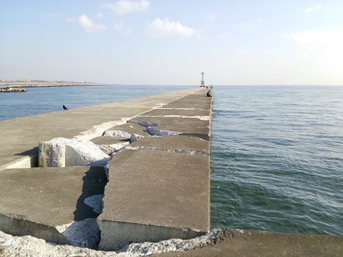 この釣り桟橋は周辺の水深が浅く、先端部でもおそらく2~3mほど。