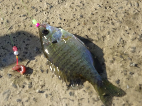 隣で手長エビを狙っていた釣り人はブルーギルも釣ってました。