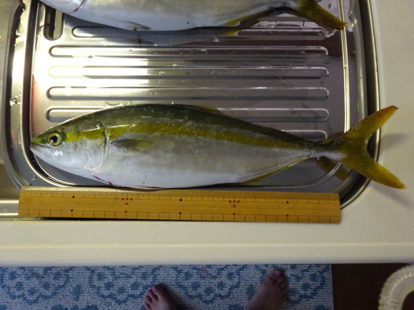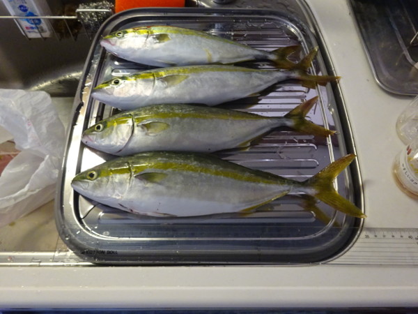白子漁港ではサビキ釣りの人が多く、ハマチを釣っている人が少なかったので、声をかけていただいた方々に全部で6匹あげました。そのため持ち帰りは4匹です。