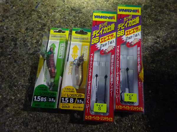 ウキ釣りは待ちの釣りなので、エギとの二刀流もいけるとのことでエギも購入。