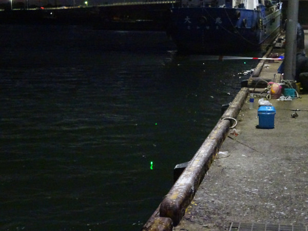 ウキ釣りの仕掛けはこのように常夜灯のすぐ下に投入します↓