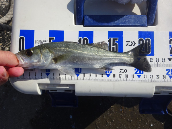 釣れたイワシをノーシンカーで泳がせていると、小さなセイゴも釣れました。