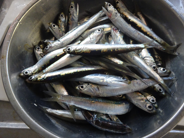 エサのなくなる14:30まで釣りをして、10-12㎝ほどカタクチイワシが75匹。