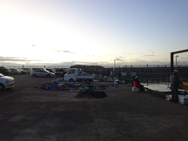 早朝6時前に現地に到着しますが、前日までマイワシがよく釣れていたとのことで、多くの釣り人がすでに陣取っています。