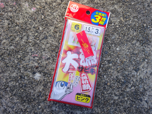 仕掛けは5.4mの磯竿に6号のピンクサビキで、ウキは使用せず竿下を狙います。エサは冷凍のアミエビを解凍したものです。