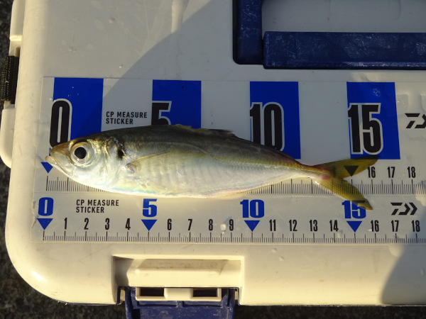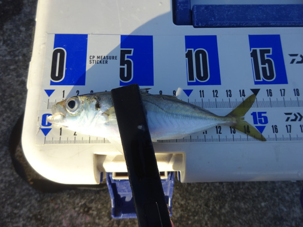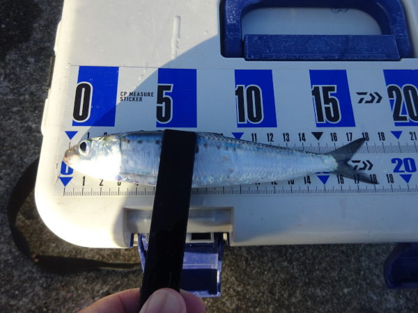 私は1匹のみでしたが、波止の先端付近から少し沖を狙っている人は、もう少しマイワシを釣っていた感じです。