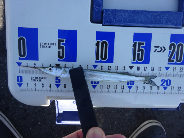サヨリの少し下の層ではカタクチイワシも回遊しています。