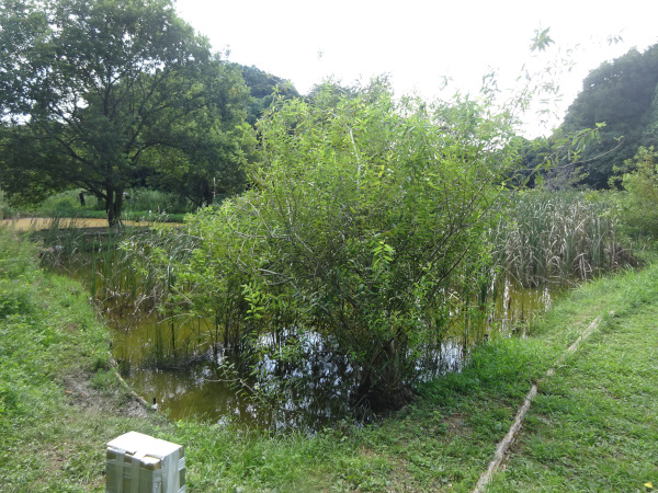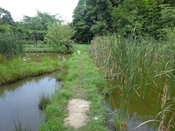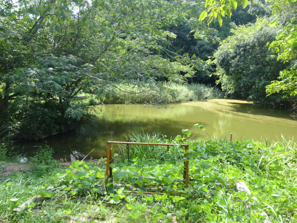 公園内には多くの池がありますが、釣れるポイントは日陰になっており、ザリガニが隠れる場所のあるところのようです。
