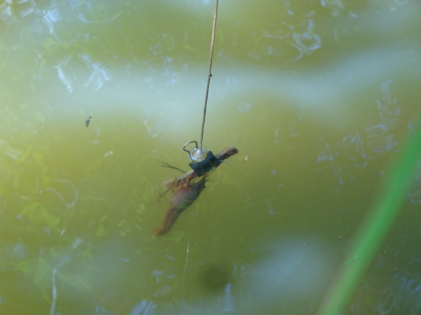 かなりの数のザリガニが生息しており、いいポイントだとエサを投入してすぐに喰いついてくれるのですが、水面からザリガニを出す瞬間にエサを離してしまうので難しいです(><)