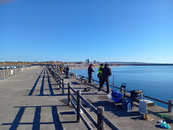 本日は小潮で、満潮が10時半頃。9時半前に到着したのですが岸壁から桟橋まで釣り人で埋め尽くされており、竿を出すスペースがありません!