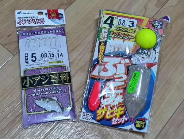 仕掛けは私が小アジ専科ハゲ皮の5号、子供はピンク色のサビキの4号です。