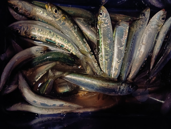 この場所ではエサを入れなくても、マイワシとママカリが入れ食い状態!