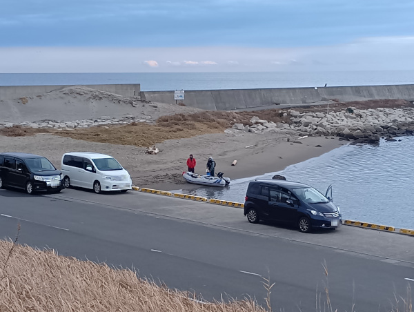 福田漁港の東端にある砂浜から、ゴムボートを出廷している方もいました。いつか子供が大きくなったら子供と一緒に出廷してみたいです。